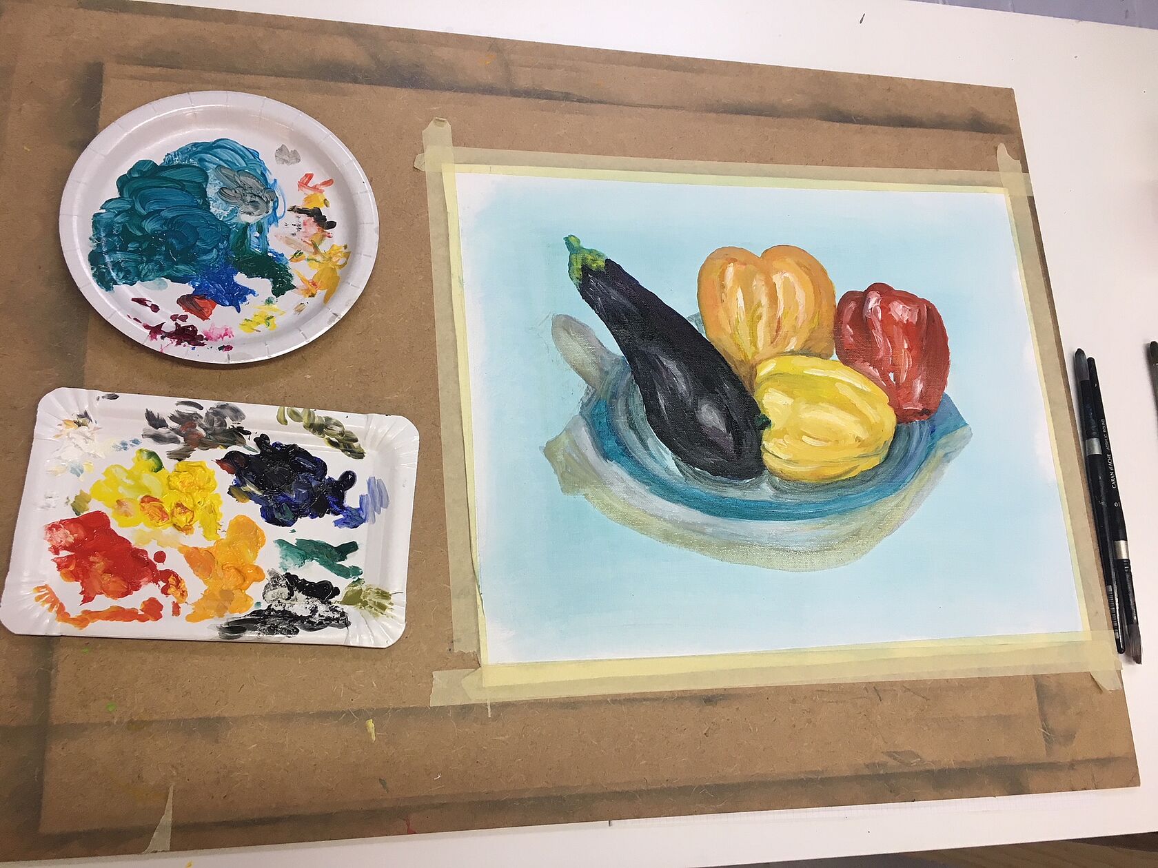 Die TN entwickeln ein Gespür für eigene Bildideen und deren Umsetzung mit Acryl- oder Gouache.